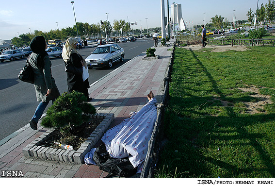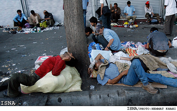 در تابستان هم كه هواي تهران براي ماندن در فضاي باز مساعد ميشود، كارگران شهرستاني و فصلي و افغانهاي كارگر و يا مردان و زنان مسافري كه ترجيح ميدهند پولي براي سرپناه ندهند و همان كنار خيابان شب را بگذرانند، ديگر زحمت رفتن تا همان دو يا سه مركز شبانهروزي نگهداري شهرداري را هم به خودشان نميدهند و كنار و كنج خيابان، مخروبههاي هميشه پا برجاي شهرمان،، زير پلها، در پاركها، دستشوييهاي پاركها و غيره و يا مغازههاي مخروبهاي كه شهرداري مدتهاست تملكشان كرده و حالا خرابهاي مهيا براي انواع جرم است، شب را صبح ميكنند.