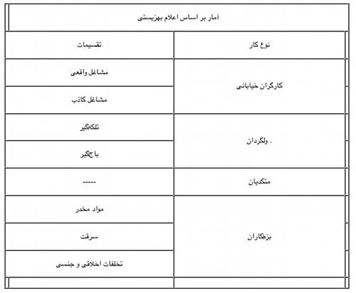 کودکان خیابانی به لحاظ گذران امور خود به چند دسته تقسیم میشوند. شامل: 1. کارگران خیابانی 2. ولگردان 3.. متکدیان 4. بزهکاران