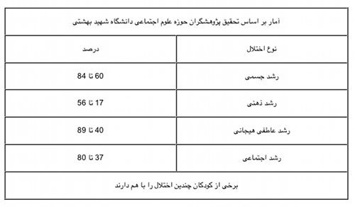 علاوه بر این مشکلات، مشکلاتی هم از قبیل اختلال رشد جسمی و ذهنی، عاطفی، سوء تغذیه و غیره نیز گریبان گیر کودکان خیابانی است که هر روز بر تعداد آنها افزوده می شود.