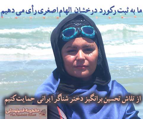 مدرسه فمینیستی: ثبت ركورد شنا در آبهاي آزاد «الهام سادات اصغري» با مشكل عدم تائيد از طرف وزارت ورزش روبرو شده است! بنابه گزارش سايت عصر ايران الهام سادات اصغري كه اولين زن شناگر ركورد دار ايران و بنیانگذار مسابقه آبهای آزاد بانوان در ایران موفق شده تا 18 كيلومتر را بدون توقف شنا كند. او كه در اين برنامه از پوشش كامل اسلامي استفاده كرده و ناظران قانوني نيز در تمام مدت همراه وي بوده اند اكنون سر در گم عدم ثبت ركورد خود در وزارت ورزش کشور است.