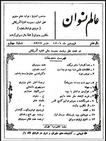 [4]. عالم نسوان، سال8، شمارۀ1، دی1306، ص1.
