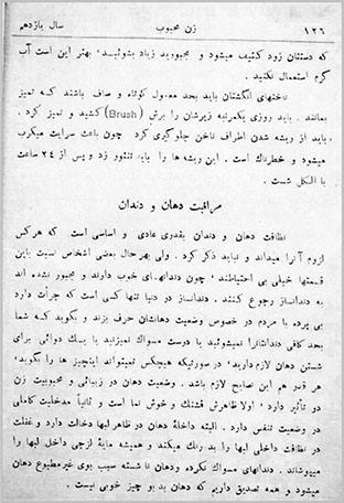 زنان میبایست نقش مهمی در نگهداری از بیماران و سالمندان و... ایفا میکردند: در ایران لازم است که مادران و دختران بزرگ مختصری دربارۀ پرستاری اشخاص مریض بدانند؛ زیرا پرستاران تعلیمیافته و مریضخانههای صحیح آراسته خیلی کمیاب است. بنابراین، اغلب اتفاق میافتد که اشخاص مریض باید در منزل خود پرستاری شوند.[59] همچنین در مقالهای مفصل، نویسنده راهکارهایی ارائه داد که پیش از آمدن طبیب، اطرافیان بیمار یا مصدوم میبایست انجام میدادند تا جان بیمار را نجات دهند.[60]