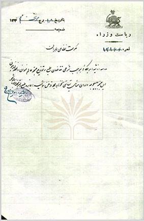 [نشان تاج و شیر و خورشید]، ریاستوزراء، نمره 12166، به تاریخ 18 برج حوت 1339