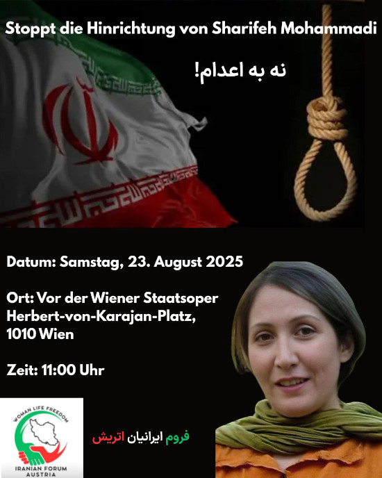 روز شنبه ۲۳ اوت برابر با اول شهریور، به دعوت فروم ایرانیان مقیم اتریش تظاهراتی در شهر وین در اعتراض به حکم اعدام شریفه محمدی و برای لغو فوری حکم اعدام این زن مبارز برگزار شد. در این تظاهرات که با شرکت تعدادی از ایرانیان مقیم اتریش برگزار شد، شعارهائی در لغو اعدام شریفه محمدی، آزادی زندانیان سیاسی و نه به اعدام و در حمایت از مبارزان دربند دیده می شد. علاوه بر سخنگو و اعضا و دوستان فروم، نماینده پارلمان آقای هلموت برنداشتتر از حزب نئوس نیز در این حرکت شرکت داشت و ضمن حمایت از آن، قول پیگیری خواست های مطرح شده در این حرکت اعتراضی را داد. تظاهرات با پخش آهنگ «برای» و شعار «زن، زندگی، آزادی» پایان یافت.