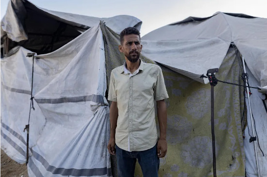همین حالا در خیابان بودم؛ ماشینها در حرکتاند، همه به سمت جنوب میروند. اگر مجبور شوم، به منطقه المواسی در خانیونس میروم. اما وقتی به چهرههای فرزندان و همسرم نگاه میکنم، نمیدانم چه کنم. من هیچ چادری ندارم. هیچ چیز ندارم. همان ملحفههایی که با آن خود را میپوشاندیم زیر آفتاب پوسیدهاند. وقتی سعی کردم آنها را بدوزم، پاره شدند.