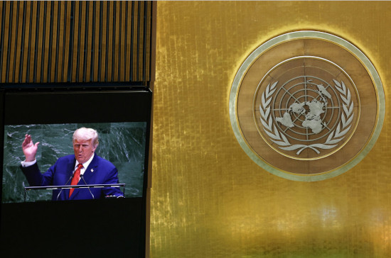 رئیسجمهور آمریکا در صحن سازمان ملل، تغییرات اقلیمی را مورد تردید قرار داد. او همچنین اعلام کرد که «آزمایش مرزهای آزاد» باید خاتمه یابد.