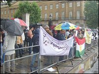 به مناسبت بيست و ششمين سالگرد صدور فرمان آيت الله خمينی، بنيانگذار جمهوری اسلامی به نيروهای مسلح برای پايان دادن به "غائله کردستان"، دهها تن از کردهای مقيم لندن در مقابل خيابان داونينگ استريت، محل کار و سکونت نخست وزير بريتانيا گردآمدند تا نسبت به برخورد نيروهای امنيتی و انتظامی جمهوری اسلامی با حرکتهای اعتراضی اخير در مناطق کردنشين غرب ايران اعتراض خود را اعلام کنند.