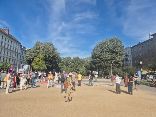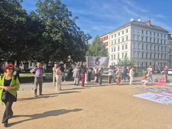 روز شنبه ۲۹ شهریور ۱۴۰۴( ۲۰ سپتامبر ۲۰۲۵) شهر برلین همزمان با شهرهای وین،آمستردام، اشتراسبورک، لندن، زوریخ، ونیز، کاسل، هامبورگ، فرانکفورت، هانوفر و کلن تظاهرات و گرد هم آئی در همبستگی با جنبش اعتراضی مردم ایران، با یاد جنبش مهسا که سر آعاز جنبش سراسری در ایران با نام ژن، ژیان، آزادی یا همان زن، زندگی، آزادی را رقم زد و علیه اعدام گسترده حکومت جنایتکار جمهوری اسلامی اسلامی ده ها نفر از ایرانیان آزاده، درمیدان اورانین بورک برلین گردهم آمدند.