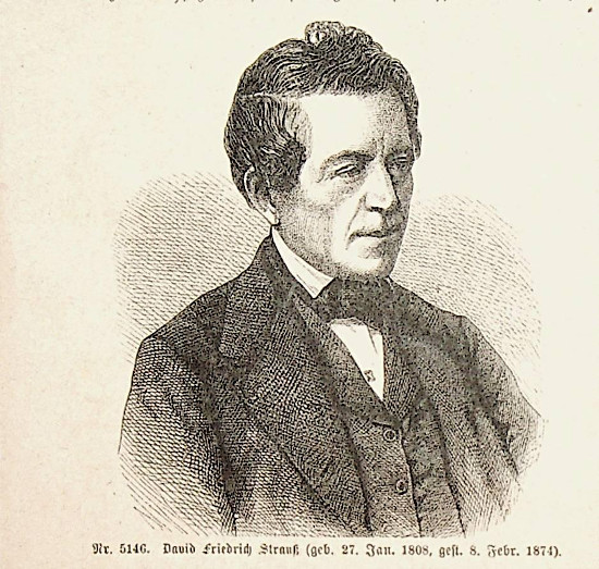 اشتراوس بدلیل هواداری از افکار داروین میگفت زندگی از ماده تشکیل شده، تئوری داروین پیرامون تکامل حقیقت دارد، مغز انسان وابسته به تغییر و تحولات مادی است و انسان ظرفیت و استعداد نبوغ آمیز دارد، انسان خالق تفکر و فرهنگ است، ارزش انسان به سبب امکان خود بودن و توانایی رابطه گرفتن با سایر همنوعان اش است. داوید فریدریش-اشتراوس در کتاب "تاریخ عقاید مسیحی و مبارزه با علم مدرن در سال ۱۸۴۹ میلادی از هگلی های جوان یا چپ نیز فاصله فاصله گرفت و در حمایت از بیسمارک و دولت پرویس به مخالفت با دمکراسی و انقلاب پرداخت. دو فیلسوف روشنگر دیگر؛ یعنی باور و فویرباخ در مبارزات ضد مسیحی یا سکولار از اشتراوس جلوتر بودند و به این دلیل بیشتر مورد مارکس و انگلس قرار گرفتند. کتاب "فلسفه کائنات" اشتراوس به ادعای رفقا، فقط در ظاهر ماتریالیستی است. آخرین اثر او "ایمان پیشین و ایمان جدید، یک اعتراف" در سال ۱۸۷۴ خوانندگان زیادی یافت گرچه آن مخلوطی بود از ایدههای هگلی و کج فهمی هایی در شناخت ناشی از علوم تجربی. در این کتاب نویسنده مخالف دگماتیسم هگل گرایان راستگرا است. هگل خود به عیسای تاریخی یا واقعی باور داشت ولی اشتراوس منکر عیسای پیامبر و ناجی بود. عیسای تاریخی در تضاد با عیسای اسطوره ای قرار داشت. بعد از اشتراوس فیلسوف مذهبی دیگری بنام شلایرماخر آلمانی کتابی در باره "زندگی مسیح" نوشت.