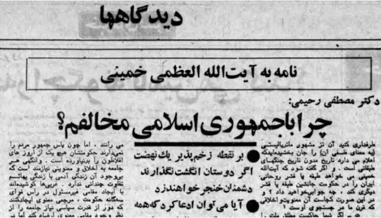 نامهٔ مصطفی رحیمی به روحالله خمینی که در روزنامه آیندگان در ۲۵ دی ۱۳۵۷ منتشر شد، یکی از مهمترین اسناد فکریِ لحظهٔ انقلاب ایران است. اهمیت آن در این است که در اوج محبوبیت خمینی و در شرایطی که فضای سیاسی به شدت انقلابی بود، یک روشنفکر از درون کشور با صراحت نسبت به «جمهوری اسلامی» هشدار داد. برای فهم این متن باید آن باید توجه داشت که در آن زمان، شاه هنوز کاملاً سقوط نکرده بود (چند روز بعد، ۲۶ دی ۱۳۵۷، کشور را ترک کرد). خمینی هنوز به ایران بازنگشته بود (۱۲ بهمن). شعار «جمهوری اسلامی» تازه به عنوان شعار اصلی انقلاب مطرح شده بود. و اغلب نیروهای سیاسی هنوز تصور روشنی از شکل حکومت آینده نداشتند. در این زمان، بسیاری از روشنفکران سکولار یا از خمینی حمایت میکردند یا سکوت کرده بودند. فضای اجتماعی بسیار احساساتی و ضد شاه بود. بحث نظری درباره ساختار آینده حکومت تقریباً غایب بود. در چنین فضایی، انتشار این نامه یک مداخله نظری بسیار کمسابقه بود.