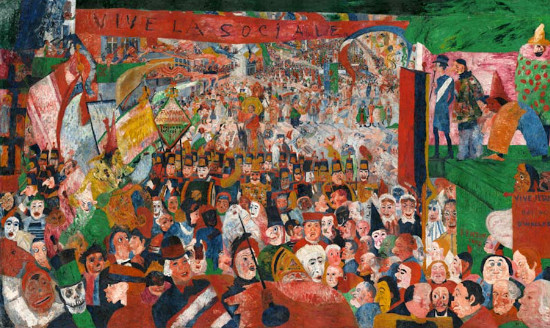 وقتی به نقاشی انسور نگاه میکنیم، میبینیم که صحنه هم کارناوال است، هم رژهی نظامی و هم نوعی تظاهرات. یعنی در کلیت خود، هم خندهدار است، هم نمایشی از اقتدار، و هم چیزی که ظاهراً از دل مردم و با دستهای مردم برمیآید؛ و در عین حال، غمانگیز و حتی ترحمبرانگیز است.