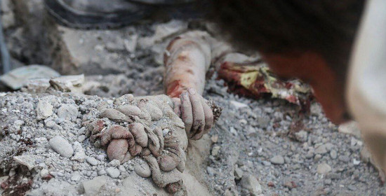 آری کمک موعود دی ماه خونین از راه رسید با ناو جنگی آبراهام لینکلن با صدها بمب افکن و هواپیمابر شارل دوگل با درون و سوپر سونیک و موشک و بمب چند صد تنی که بر سر مردمان بیگناه در نیمه شب خانه هاشان را آوار میکنند و کوچه و خیابانشان را سوراخ سوراخ و راهشان را به هر سو بسته .