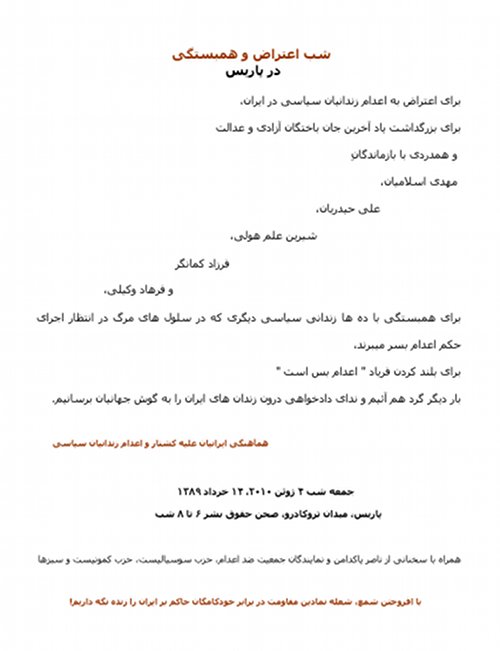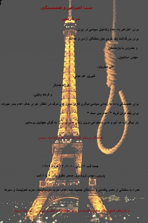 همراه با سخنانی از ناصر پاکدامن، نمایندگان جمعیت ضد اعدام، حزب سوسیالیست، حزب کمونیست و سبزها