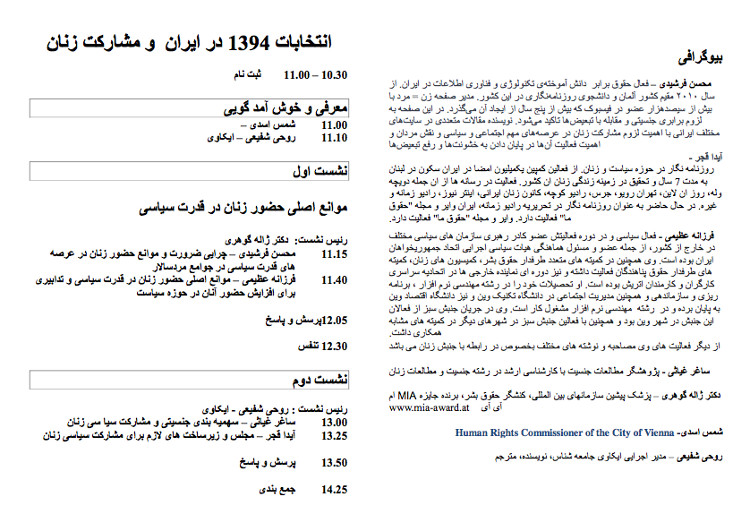 سخنرانان :ساغر قیاسی، محسن فرشیدی ، آیدا قجر و فرزانه عظیمی