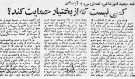 يک نامه ی تاريخی - کسی نيست که از بختيار حمايت کند؟