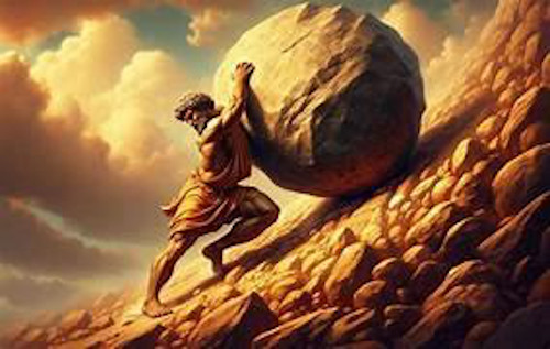 در درهای از کسانی که شیفتهی وعدهی جاودانگی هستند، سهمش ضربان قلبِ تنها و باستانیِ اوست. خیره شدن به جهانی که مدتی دراز است او را به عنوان قهرمان، به باد نسیان سپرده است، منتظر میماند که داستانش را تعریف کند. زمین کوهستانش به خاک نشسته، سیزیف در دره نشسته و زخمهاش را التیام می بخشد...